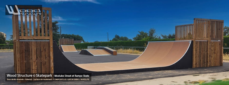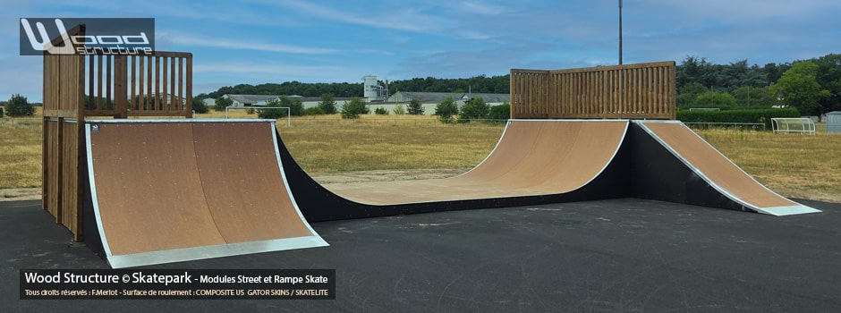 Module et Rampe Skate design par Wood Structure et fabrication dans les ateliers de l’entreprise Merlot Sarl à Richelieu (37)