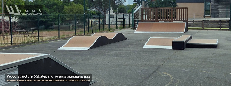Module et Rampe Skate design par Wood Structure et fabrication dans les ateliers de l’entreprise Merlot Sarl à Richelieu (37)