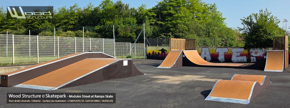 Module et Rampe Skate design par Wood Structure et fabrication dans les ateliers de l’entreprise Merlot Sarl à Richelieu (37)