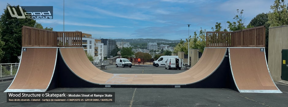 Module et Rampe Skate design par Wood Structure et fabrication dans les ateliers de l’entreprise Merlot Sarl à Richelieu (37)