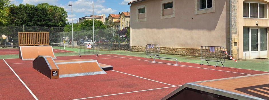 Installation d’un Skatepark modulaire à Saint-Paul-Le-Jeune, commune française, située dans le département de l’Ardèche en région Auvergne-Rhône-Alpes.
